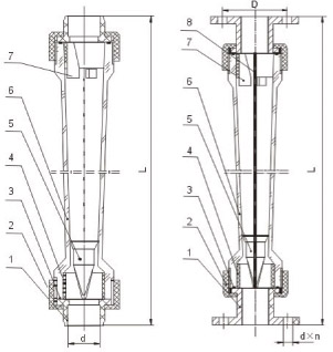 LZT-S塑料浮子流量計(jì)主要部件:錐管材料AS,浮子材料(ABS),插管連接(PVC),外螺紋連接尼龍(PA6),內(nèi)螺紋連接尼龍(PA66)。